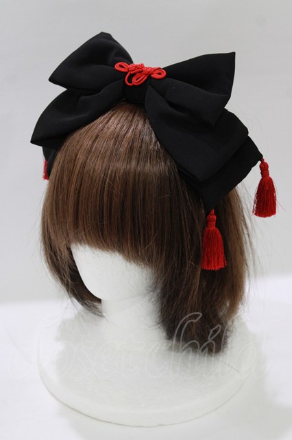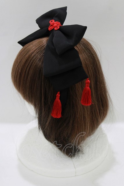 metamorphose / 無地タッセル付きリボンカチューシャ ブラック H-26-02-12-068-ME-AC-NS-ZH