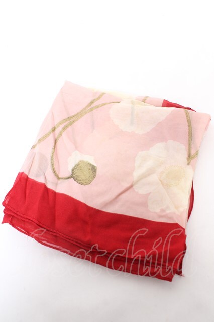 INGEBORG / ポピー柄大判ストール ピンク Y-26-02-09-022-LO-ZA-SZ-ZY [2100070000061240-Y-26-02-09-022-LO-ZA-SZ-ZY]