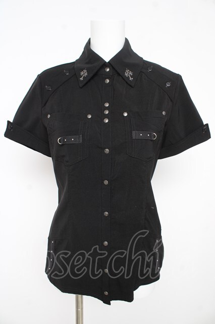 Ozz Croce / 十字架刺繍半袖ブラウス 黒 Y-26-02-09-106-OO-BL-SZ-ZY [2100070000060652-Y-26-02-09-106-OO-BL-SZ-ZY]