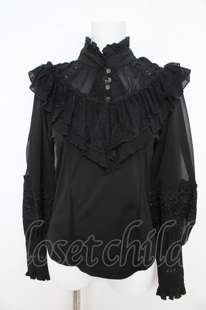 OZZ ANGELO / ヨークレースフリルブラウス 黒 Y-26-02-09-110-OO-BL-SZ-ZY [2100070000060650-Y-26-02-09-110-OO-BL-SZ-ZY]