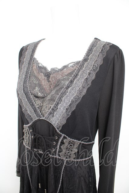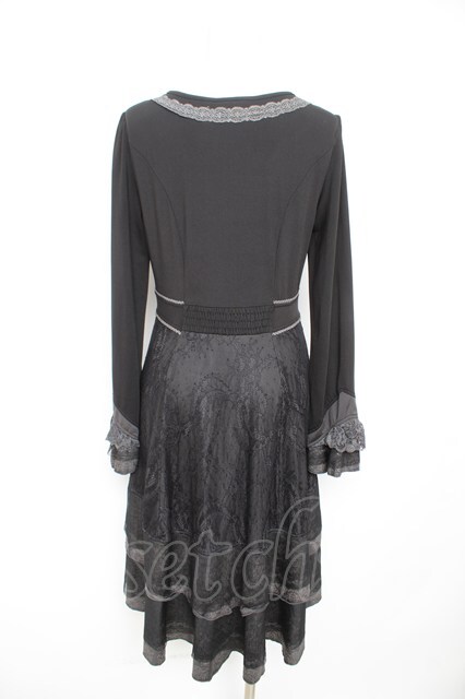 OZZ ANGELO / 胸刺繍入りレース切替フィッシュテールワンピース 黒 Y-26-02-09-128-OO-OP-SZ-ZY