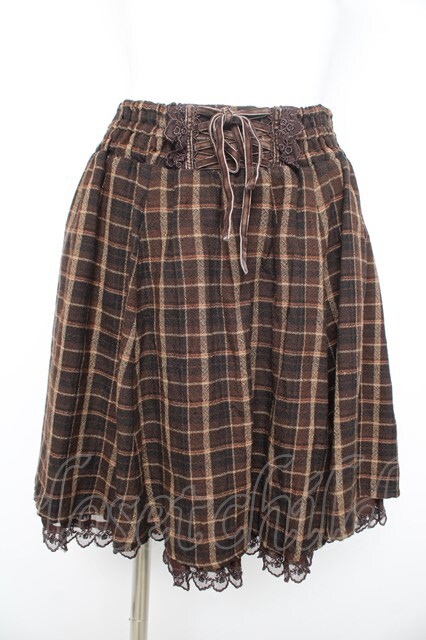 axes femme / チェックスカート 茶 Y-26-02-09-154-AX-SK-SZ-ZY