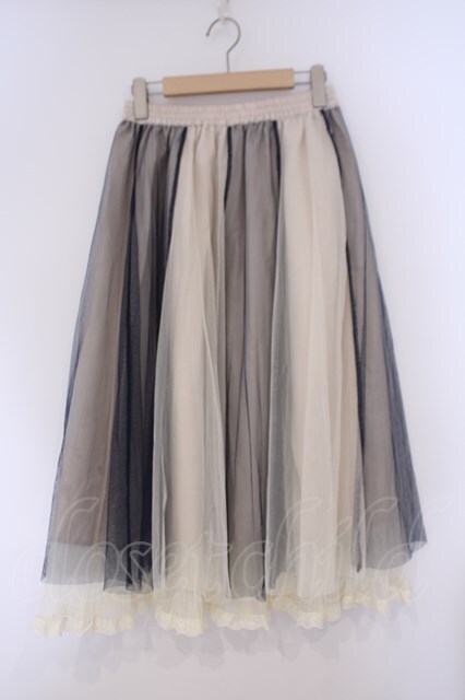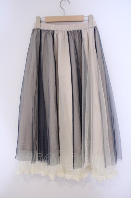 axes femme / チュール切替ミディスカート M キナリ×ネイビー O-26-02-09-057-AX-SK-OW-OS