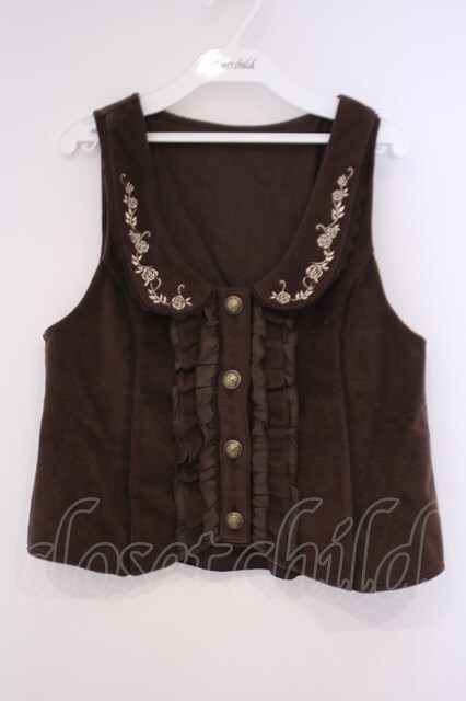 axes femme / 刺繍入りふわふわベスト M ブラウン O-26-02-09-045-AX-TO-OW-OS
