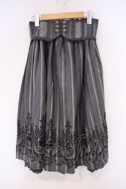axes femme / 裾フロッキーローズストライプスカート M グレー O-26-02-09-053-AX-SK-OW-OS [2100080000070505-O-26-02-09-053-AX-SK-OW-OS]