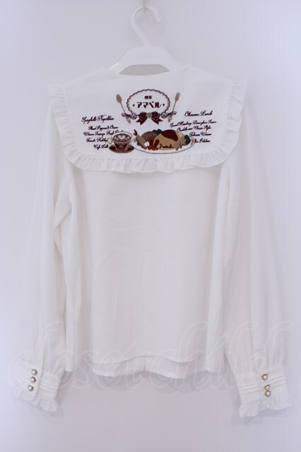 Amavel / 喫茶アマベルのランチセットブラウス シロ×ボルドー O-26-02-09-020-CA-BL-IG-OS