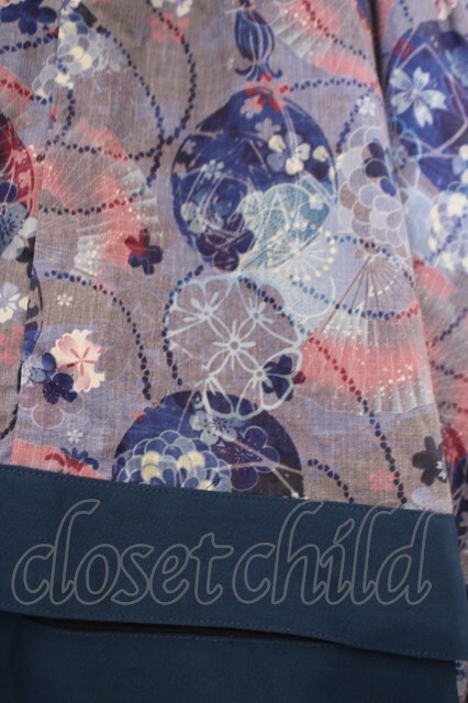 gouk / 和柄アシメロングスカート ブルー系 O-26-02-09-038-GO-SK-OW-OS [2100080000065495-O-26-02-09-038-GO-SK-OW-OS]
