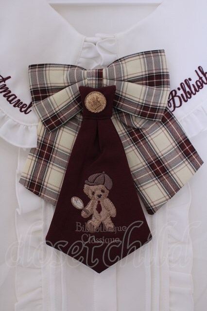Amavel / くまの探偵さん ネクタイ&チェックリボンブラウス F ベージュ O-26-02-09-021-CA-BL-OW-OS