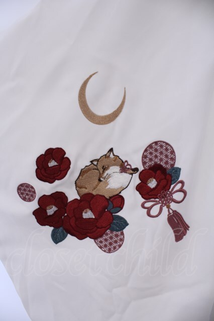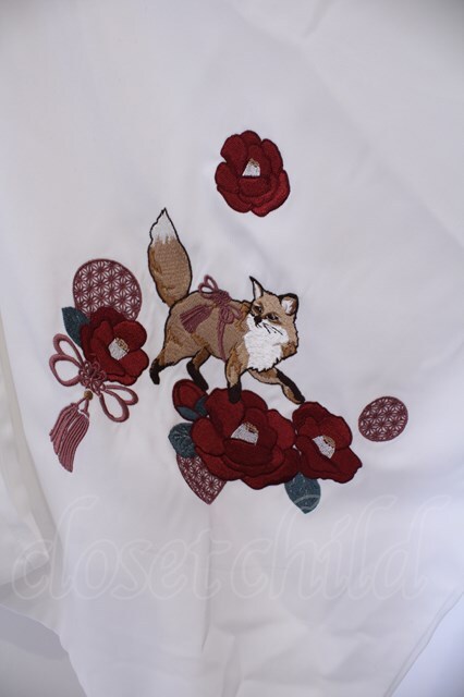 Amavel / 月夜の狐と寒椿 和風ブラウス シロ×ワイン O-26-02-09-019-CA-BL-IG-OS [2100080000042284-O-26-02-09-019-CA-BL-IG-OS]