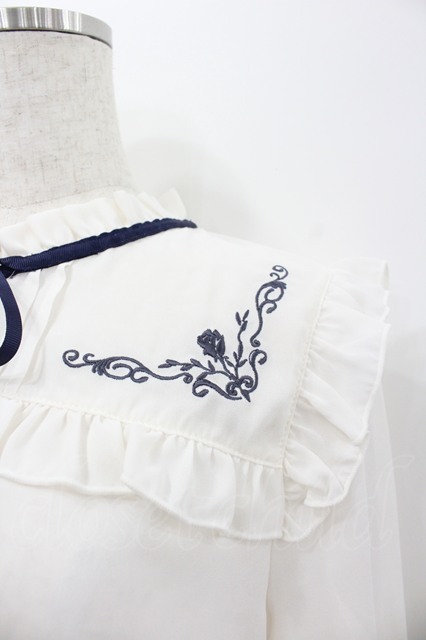 axes femme POETIQUE / ローズ刺繍レースアップブラウス 白X紺 I-26-02-08-006-AX-BL-SA-ZI