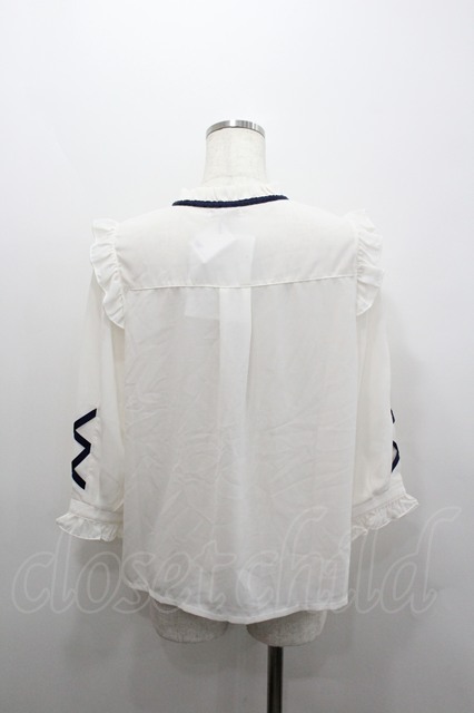 axes femme POETIQUE / ローズ刺繍レースアップブラウス 白X紺 I-26-02-08-006-AX-BL-SA-ZI [2100060000050493-I-26-02-08-006-AX-BL-SA-ZI]