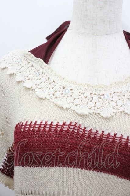 axes femme / ボーダー半袖ニットトップス アイボリーX赤 I-26-02-08-014-AX-TO-SA-ZI