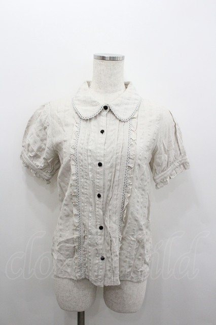 axes femme POETIQUE / ラメストライプ半袖ブラウス アイボリー I-26-02-08-018-AX-BL-SA-ZI