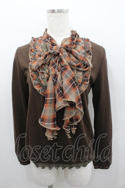 axes femme / チェックフリルトップス ブラウン I-26-02-08-035-AX-TO-HR-ZI [2100060000050431-I-26-02-08-035-AX-TO-HR-ZI]