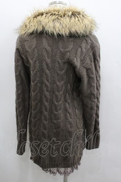 axes femme / ファー襟ロングニットカーディガン ブラウン I-26-02-08-038-AX-TO-SA-ZI