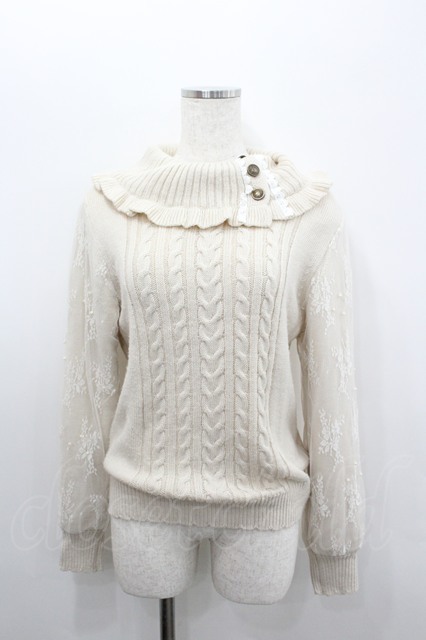 axes femme / 釦付き袖レースニットプルオーバー ベージュ I-26-02-08-039-AX-TO-HR-ZI [2100060000050426-I-26-02-08-039-AX-TO-HR-ZI]