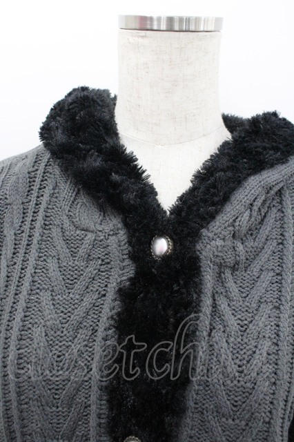 axes femme / ニット&ボアリバーシブルカーディガン グレーX黒 I-26-02-08-045-AX-TO-SA-ZI