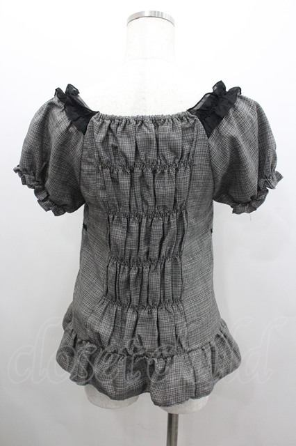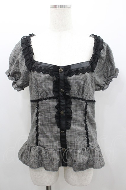 axes femme / チェック柄ペプラムトップス 黒チェック I-26-02-08-046-AX-TO-SA-ZI