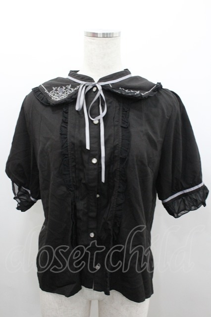 axes femme / モチーフ刺繍ブラウス 黒 I-26-02-08-058-AX-BL-SA-ZI