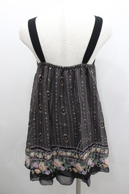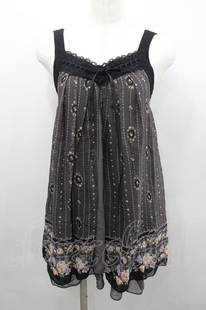 axes femme / ストライプフラワープリントノースリーブトップス グレーX黒 I-26-02-08-060-AX-TO-SA-ZI
