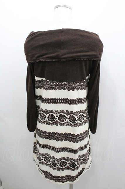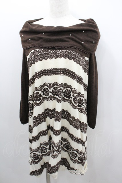 axes femme / 薔薇レースボーダーオフショルニットワンピース ブラウンXアイボリー I-26-02-08-062-AX-OP-SA-ZI [2100060000050577-I-26-02-08-062-AX-OP-SA-ZI]