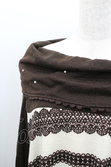axes femme / 薔薇レースボーダーオフショルニットワンピース ブラウンXアイボリー I-26-02-08-062-AX-OP-SA-ZI