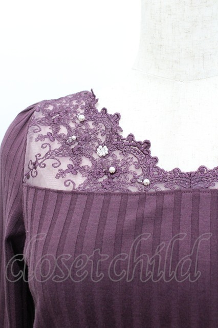 axes femme / 繊細レース長袖インナー パープル I-26-02-08-071-AX-TO-HR-ZI