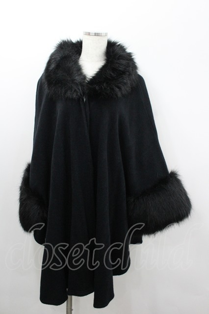 axes femme / /ファー付き2wayケープ 黒 I-26-02-08-077-AX-TO-HR-ZI