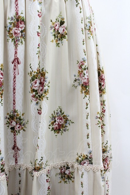 axes femme / ストライプ花柄ロングスカート 生成り I-26-02-08-095-AX-SK-SA-ZI