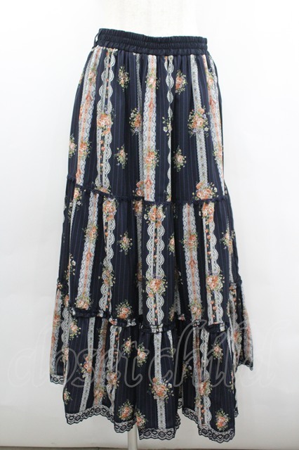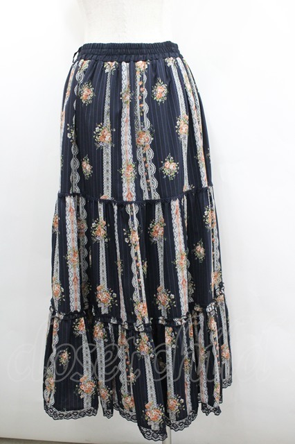 axes femme / ストライプ花柄ロングスカート 黒 I-26-02-08-109-AX-SK-SA-ZI [2100060000050568-I-26-02-08-109-AX-SK-SA-ZI]