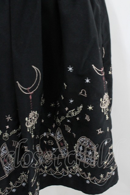 axes femme / 夜空刺繍スカート M 黒 I-26-02-08-115-AX-SK-TE-ZI
