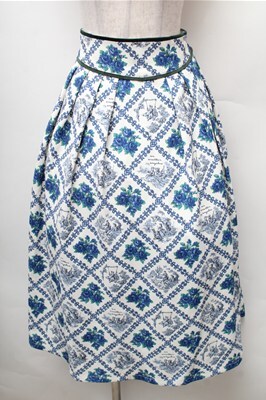 an another angelus / ヴィンテージローズタイツ柄タックスカート オフxブルー S-26-02-08-058-CA-SK-HR-ZS