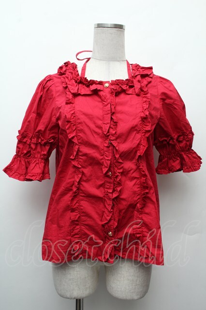 Chalmiere / スクエア開きコットンブラウス 赤 S-26-02-09-013-0-BL-HR-ZS