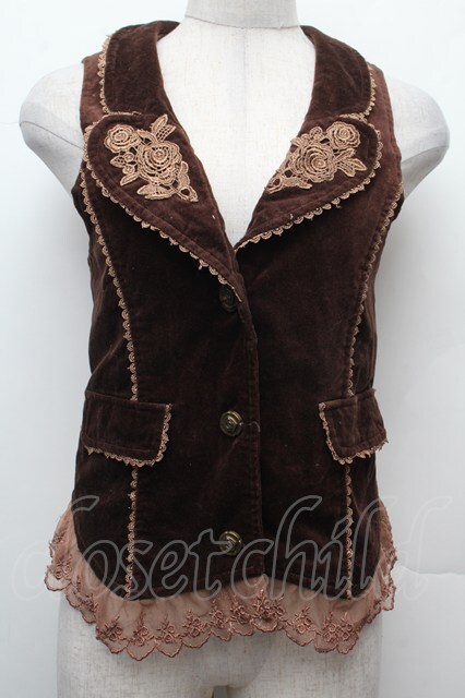axes femme / バラ刺繍ベロアベスト ブラウン S-26-02-09-016-AX-TO-HR-ZS