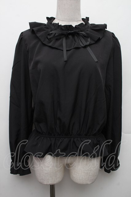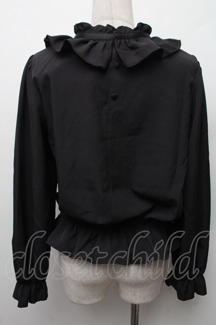 m petit by misako / フリルペプラムブラウス L 黒 S-26-02-09-024-LO-BL-HR-ZS