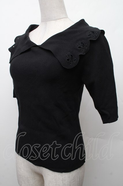 an another angelus / ローズカットワークビッグカラーニットプルオーバー 黒 S-26-02-09-026-CA-TO-HR-ZS [2100020000037567-S-26-02-09-026-CA-TO-HR-ZS]