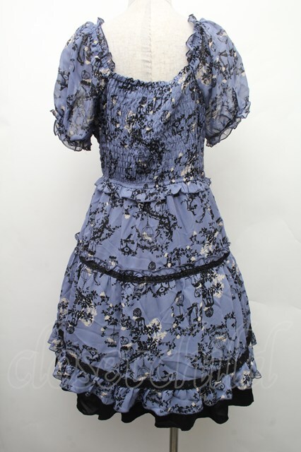 axes femme / バードケージ柄シフォンシャーリングワンピース ブルー S-26-02-09-036-AX-OP-HR-ZS