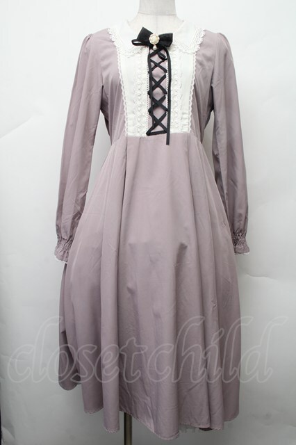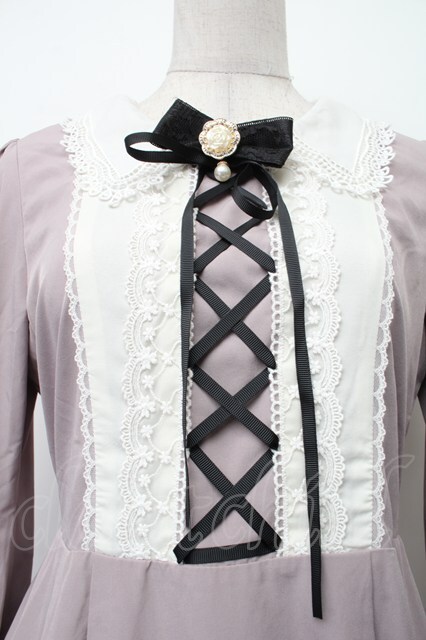 axes femme kawaii / 襟デザインロング長袖ワンピース グレー S-26-02-09-052-AX-OP-HR-ZS [2100020000037636-S-26-02-09-052-AX-OP-HR-ZS]