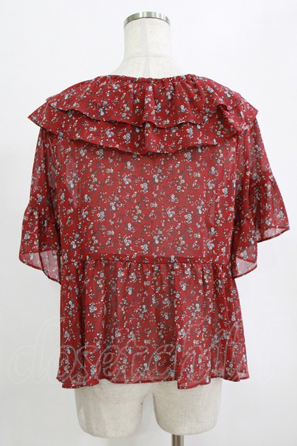 axes femme / 小花柄W襟ブラウス M ワイン H-26-02-14-045-AX-BL-NS-ZH