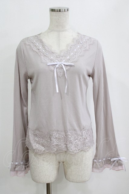 axes femme / 袖フリルレースインナープルオーバー M ラベンダー H-26-02-14-058-AX-TO-NS-ZH
