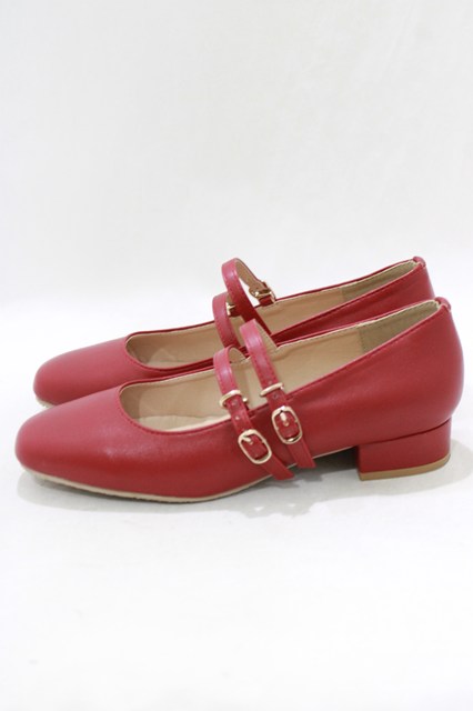F&A / ダブルストラップスクエアトゥパンプス L/24.5~25cm レッド H-26-02-14-086-LO-SH-NS-ZH