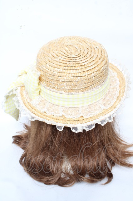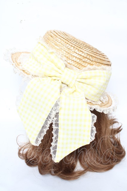 Angelic Pretty / LovelyチェックストローHat イエロー Y-26-02-11-015-AP-AC-AS-ZY [2100070000061389-Y-26-02-11-015-AP-AC-AS-ZY]