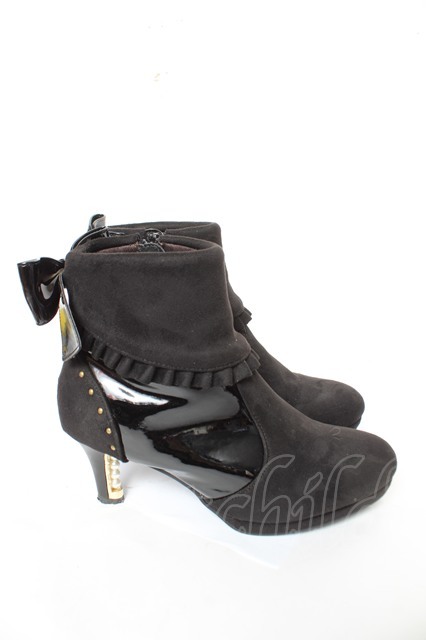axes femme POETIQUE / パールヒールショートブーツ L 黒 Y-26-02-11-026-AX-SH-SZ-ZY
