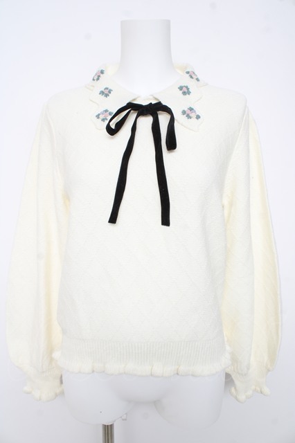 axes femme POETIQUE / フラワー刺繍襟ニットプルオーバー M 生成り Y-26-02-11-035-AX-TO-SZ-ZY
