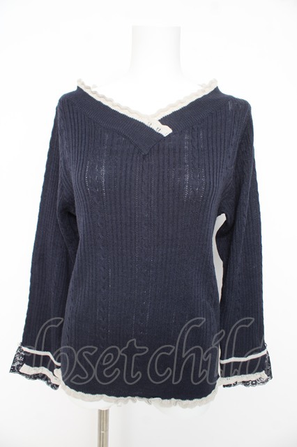 axes femme / バイカラーVネックニットプルオーバー M 紺 Y-26-02-11-036-AX-TO-SZ-ZY