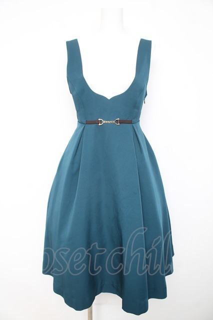 F i.n.t / チェーンビット使いディープVネックジャンパースカート グリーン Y-26-02-11-060-CA-OP-SZ-ZY