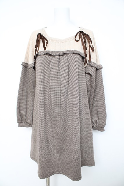 axes femme / ヨーク切替千鳥柄カットチュニ M 茶 Y-26-02-11-076-AX-OP-SZ-ZY [2100070000061148-Y-26-02-11-076-AX-OP-SZ-ZY]