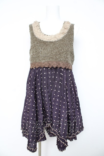 axes femme / ボアニット切替ドットワンピース M 紫 Y-26-02-11-078-AX-BL-SZ-ZY [2100070000061135-Y-26-02-11-078-AX-BL-SZ-ZY]