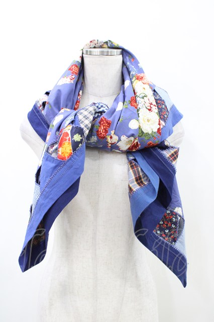 PINK HOUSE / パッチワーク花柄ストール ブルー H-26-02-12-1023-LO-ZA-NS-ZH [2100030000086594-H-26-02-12-1023-LO-ZA-NS-ZH]