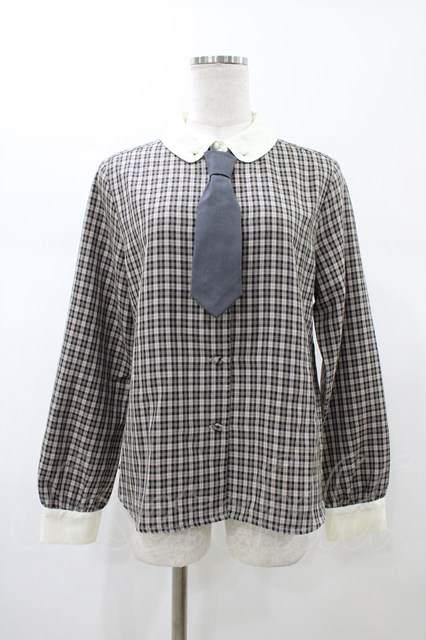 F i.n.t / プチネクタイ付きクレリックチェックシャツ Free GRAY×BK H-26-02-12-1057-CA-BL-NS-ZH [2100030000086523-H-26-02-12-1057-CA-BL-NS-ZH]